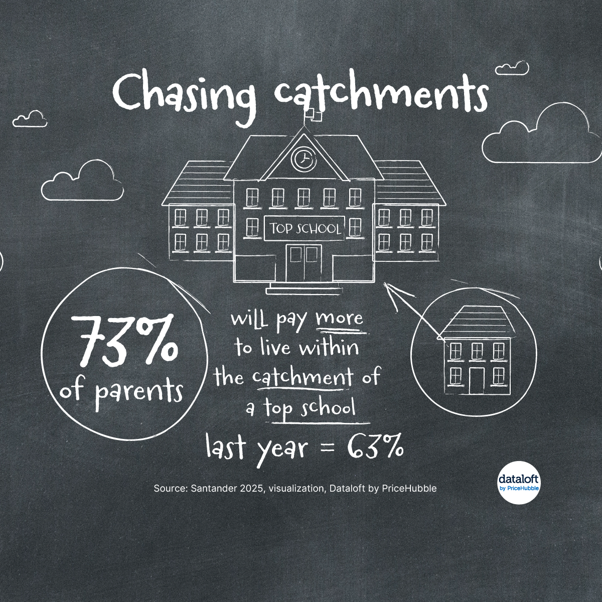 New research from Santander UK shows nearly three-quarters of parents (73%) would pay extra to live in the catchment of a top-performing school, up 11% on last year.